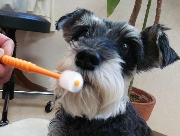 いつもの歯磨きは、散歩後お風呂場でシャワーで足を洗った後、